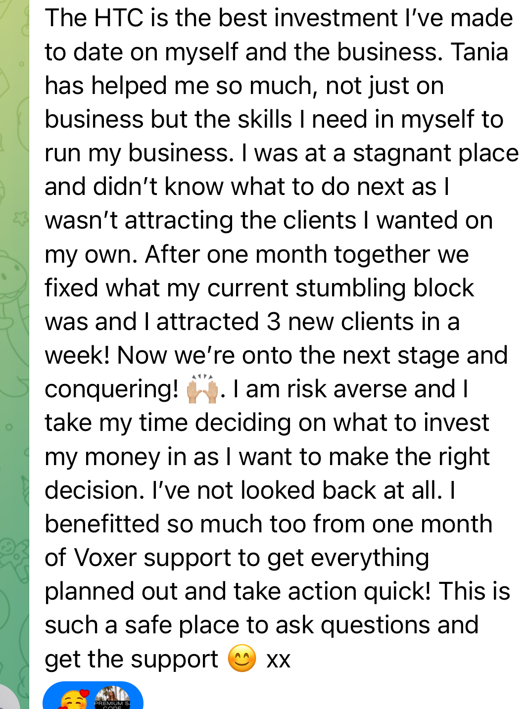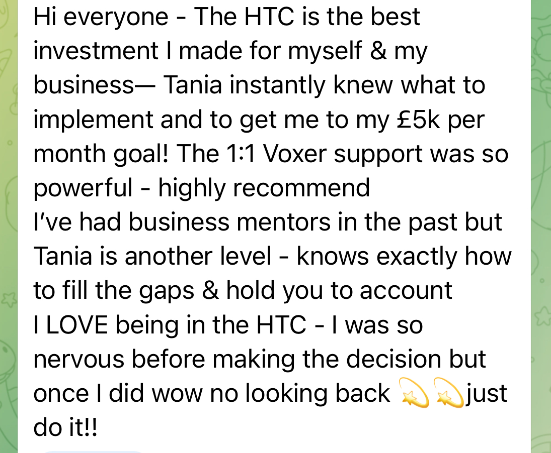 ✓ 1 Month Voxer 1-1 Mentorship With Tania (worth £2,000+vat)
